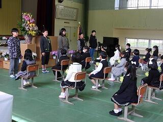 上級生の6年生の代表が、最後の方で少しだけ参加して、1年生にお祝いの言葉と励ましの言葉を述べていました。