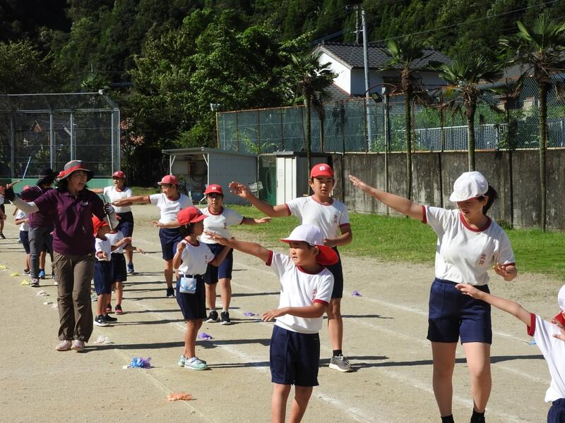 9月24日(火)運動会全体練習3回目が行われました。今日は、対団リレーの練習や開会式などが行われました。北川小は台風17号の影響もなく順調に練習が進んでいます。