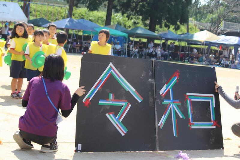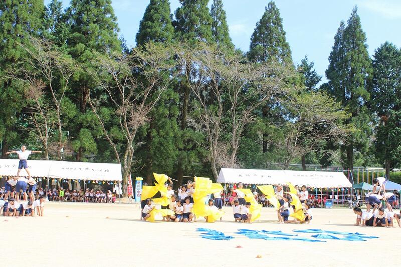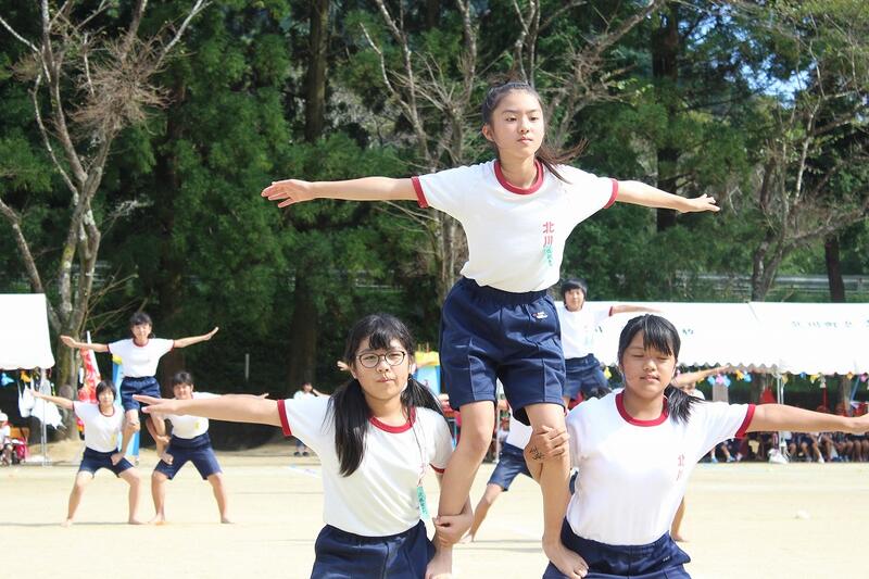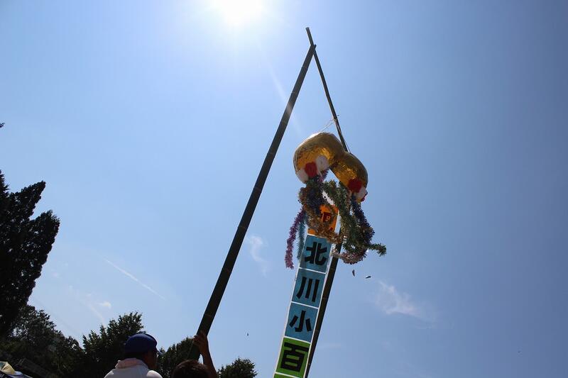 心配された天気も嘘のように晴天にめぐまれ、記念すべき第100回の運動会が開催されました。団技や表現のあちこちで100回目を祝おうとする工夫が見られました。また来賓、PTA団技ではPTA三役が作成した「祝、北川小学校百周年」とかかれたくす玉がわられ、地域と学校の一体感を感じた運動会でした。
