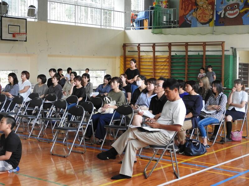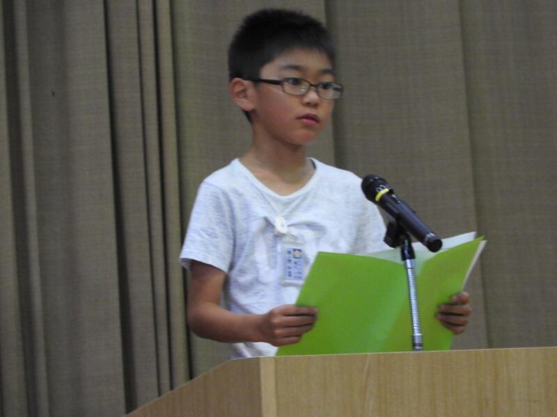 2学期がスタートしました。1年と4年児童が2学期の目標を掲げ作文発表をしました。