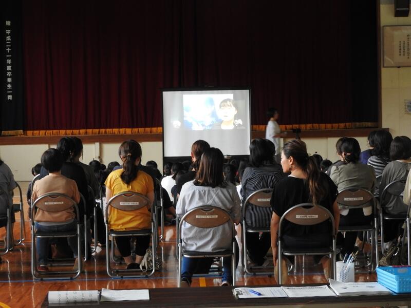 9日(金)は参観日でした。同時に上学年児童と保護者の方々で学校保健委員会を開催しました。今回はNTTの方々に講師として情報モラルについて話をしていただきました。体育館に設置されたスクリーンを使って遠隔操作による講習でした。