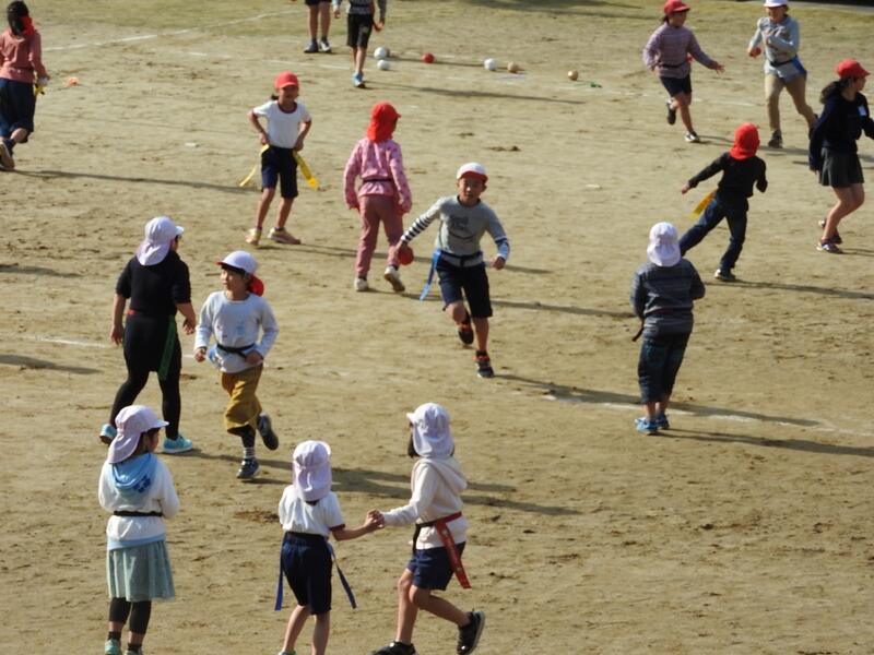 二学期も残り少なくなり、全校遊びの季節になりました。子どもたちは、この時期昼休みが楽しみです。今回は、タグ取り陣取りゲームです。北川は、寒い時期ですが子どもたちのバトルは熱いです。