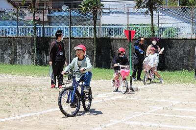 3年生以上は、自転車の乗り方と横断歩道の渡り方を中心に学習しました。指導は延陵自動車学校の指導員の皆様です。