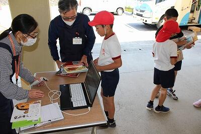 <初めて利用する1年生には、係の方が使い方をやさしく教えてくださいました。最後の写真です。>