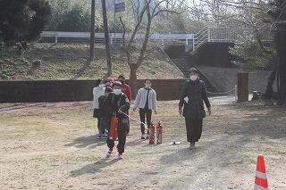 その後、代表児童に水消火器をつかって火を消す練習をしました。