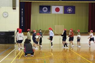 6年生が入場した後に、全校でゲームをしました。〇×ゲームでした。その後に学年ごとの6年生へ向けてのお別れの言葉と出し物でした。1・2年生は、合同で歌やダンスを披露しました。