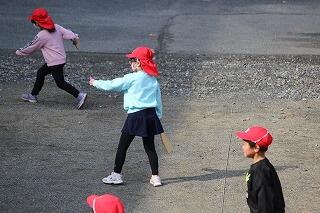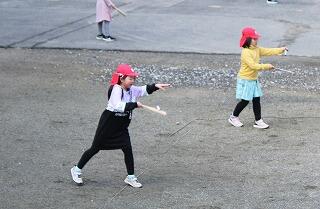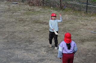 初めての羽根つき、1回目がなかなかとばないようでした。活動の最後では、少し慣れてきて、3・4回続く子どももいました。