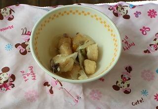 稚鮎とは、鮎の稚魚のことです。今日の稚鮎は、北川のきれいな水で育てられた稚鮎だそうです。稚鮎は、日向夏味噌ソースがけで甘くしてありますが、はらわたに少し苦みがあります。たくさん食べる子どもとほどほどに食べる子どもに分かれていたようでした。