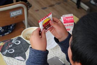 今日は、節分。今日の給食には、節分に合わせて豆が出ました。さらに、今日のメニューは、宮崎応援メニュー北浦カンパチレモンマリネでした。ほかにちんげん菜スープ、牛乳、ごはんでした。豆は、ピーナッツではなく、大豆でした。