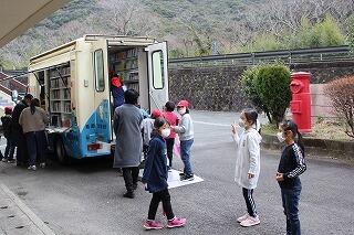 今日の昼休みに移動図書館が来ました。せせらぎ号です。みんな楽しみにしていました。たくさんの本の中からお気に入りの本を見つけていました。