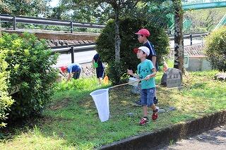 1.2年生の教室には、今、虫かごが並んでいます。生活科で秋探しの学習をしているようです。昼休みに、虫取り網をもって、虫を捕まえようとしている子どもたちの姿が見られました。