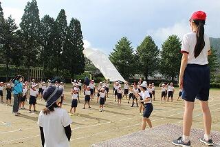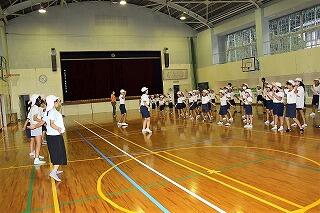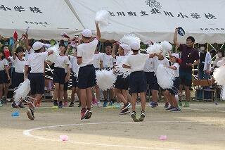 リーダーの掛け声に合わせて、子どもたちは、一生懸命応援の仕方を覚えていました。