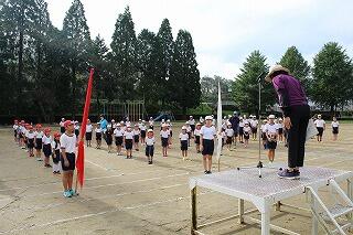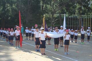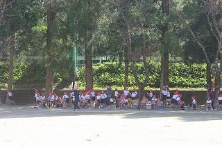 まず、学校長の話でした。昨日の予行練習の様子からよかったところやがんばってほしいことが出ました。よかったところは、誰も勝敗で文句を言う人がいなかったことでした。がんばってほしいことは、きびきびと行動し時間内に終わらせることでした。それぞれの学年でもう少し練習が必要です。