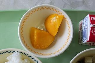 ■ 今日の給食は、宮崎農産物応援メニューでした。完熟マンゴーができました。