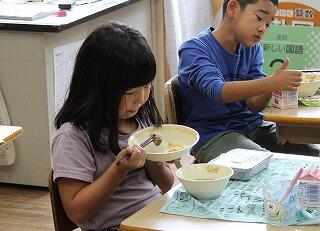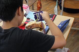 頭から食べた後、「こげている。」と言って食べるのを止めた低学年の子どもや「ちょっと苦いけどおいしい。」と言って食べている高学年の男子もいました。