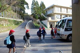 朝の時間を終えて、バスに乗って秋の遠足に出発していきました。