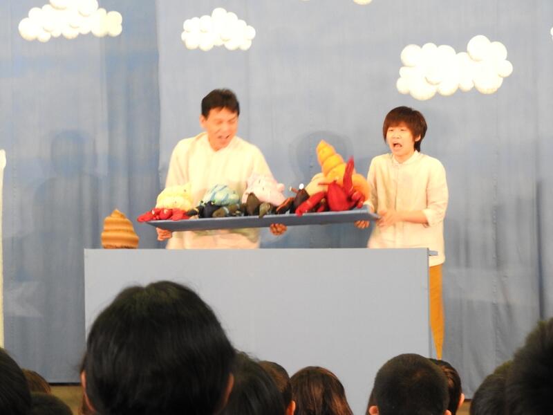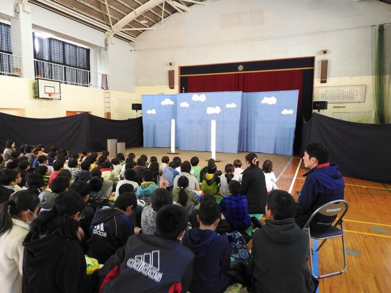 12月12日(木)劇団風の子九州の方々が来て鑑賞教室がありました。本格的な劇をみるのが初めての子どももいたようですが、みんな集中して反応よく鑑賞できました。