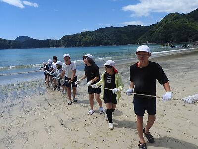 7月5日(金)、6年生が延岡市須美江で地引き網体験をしました。