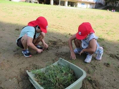 約3週間後に行われる運動会に向けて、いっしょうけんめい草を抜いていました。