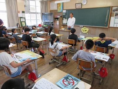 7月24日(水)、総合的な学習の一環として防災講話を行いました。講師として、九州医療科学大学の山内利秋先生をお迎えしました。山内先生は、文化財の保護など様々な分野で地域に貢献されています。
