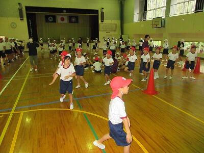 学年別に練習したあとは、二重の輪をつくってみんなで踊りました。これから練習を重ねることで自信をもって踊ることができると思います。運動会が楽しみです。保護者の皆さん・地域の皆さん、一緒に踊りましょう!