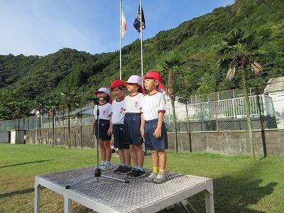 このあと、生徒指導主事による月目標の説明、子ども相撲で県代表に選ばれた5年生の表彰を行いました。