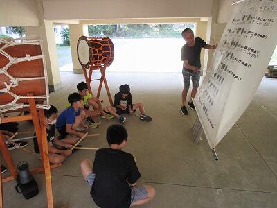 4年生以上の希望する子どもたちが参加し、昼休みに練習をしています。地元を拠点とする雲海太鼓の平野さんを講師としてお呼びし、本格的な太鼓を教えていただいています。(平野さんには4回来ていただきます)