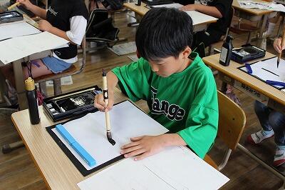 3年生が初めての毛筆(習字)を学習しました(5/8)。