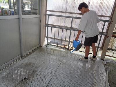 6月14日(金)にプール掃除を行いました。真夏を思わせるほどの晴天でした。