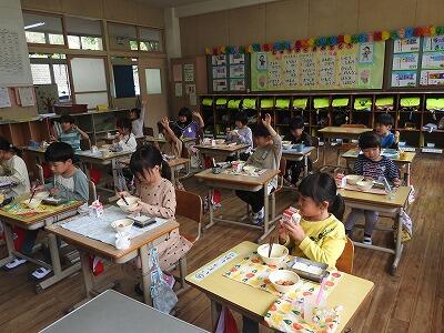 4月17日(水)は、1年生にとって初めての給食でした。6年生が配膳をしてくれた給食をとてもおいしそうに食べていました。おかわりを希望する子もいて、とても嬉しく幸せな給食になったようです。