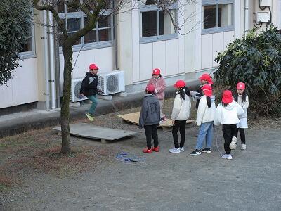 顔を出すと、子どもたちが集まって縄跳びの練習をしていました。音は、中庭にある縄跳び練習用の板の音でした。