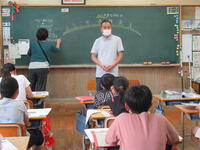 7月13日(木)、4年生が、北川漁業協同組合の長瀬一己さんのお話を聞いて、自然の役割や大切さについて学習しました。山の木、植物、川の水、川に生息する生き物等、自然はつながっていて、それぞれに役割があること、人間は、自然の恩恵を受けて生きていることを学びました。