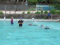 7月27日(木)の3校時に、3年生と4年生が、中学校(大淀中学校)の先生による水泳指導を受けました。