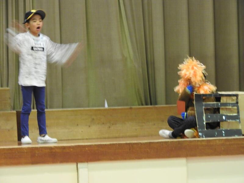 3年国語科「サーカスのライオン」3年生が発表集会で見事に演じてくれました。