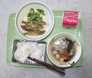 今日の給食は、宮崎応援メニューでした。第33回目になります。今日は、延岡の稚鮎です。稚鮎は、今回が3回目で、最後となるようです。