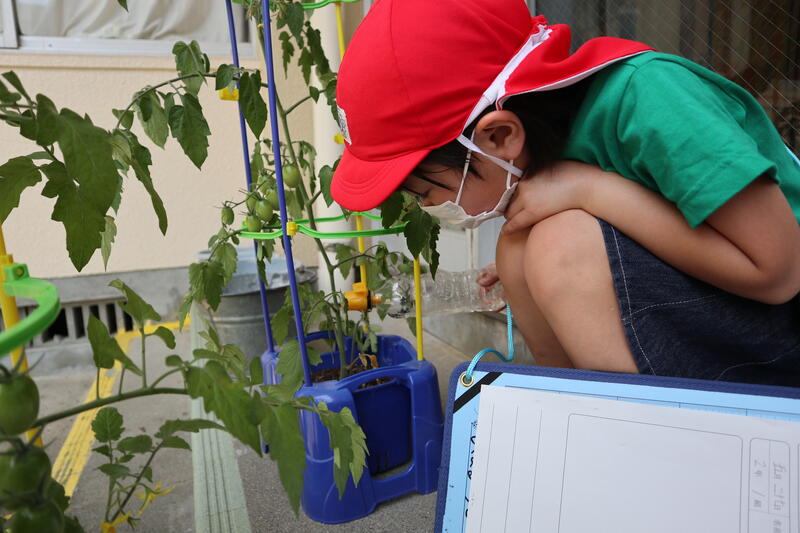 「20個になった。やったあ。」「これから大きく育ってほしいな。」など、子ども達はトマトの成長をとても楽しみにしています。