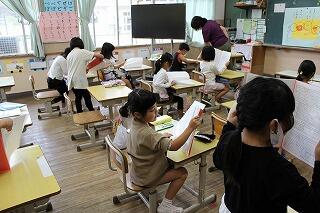 1年生は、初めての通知表です。学級担任の先生から◎〇△の意味を教えてもらい通知表について話をされました。その後、子どもたちに前期頑張ったことやできるようになったことを一人ずつ伝えられながら通知表が渡されました。子どもたちは、それぞれ開きながら「二重丸があった。」といって喜んでいました。