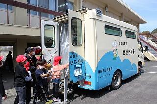 昼休みに移動図書館が2ヶ月ぶりに来ました。今日は、下学年が借りる日になっています。こどもたちは、たくさん本を借りていました。