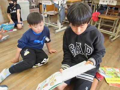 上級生は自分で選んだ本を読みます。下級生に読むのはなかなか難しいのですが、相手の反応を見ながらゆっくり丁寧にと読む姿はとてもほほえましかったです。読んでもらう下級生も嬉しそうでした。
