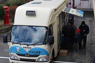 今日の昼休みに移動図書館が来ました。せせらぎ号です。みんな楽しみにしていました。たくさんの本の中からお気に入りの本を見つけていました。