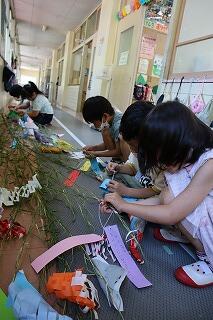 「難しいなあ」「すぐ取れるなあ」と言いながら活動していましたが、飾りつけが終わるととても嬉しそうに、七夕飾りを見ていました。