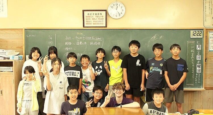 最後となった7月25日(木)には、各学級で別れを惜しむ光景が見られました。6年生の授業では、先生が英語で指示した記号を頭の上で描くゲームやフルーツバスケットをして楽しく過ごしました。