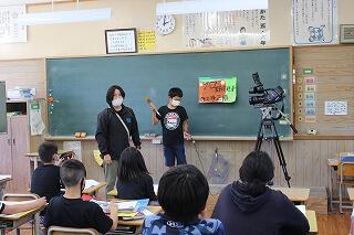 地元ケーブルテレビが取材に来ました。6年生が、将来の夢について発表していました。