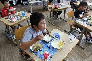 頭から食べた後、「こげている。」と言って食べるのを止めた低学年の子どもや「ちょっと苦いけどおいしい。」と言って食べている高学年の男子もいました。
