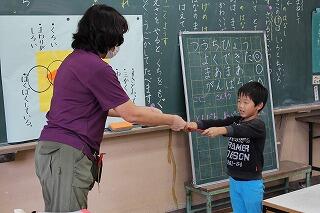 1年生は、初めての通知表です。学級担任の先生から◎〇△の意味を教えてもらい通知表について話をされました。その後、子どもたちに前期頑張ったことやできるようになったことを一人ずつ伝えられながら通知表が渡されました。子どもたちは、それぞれ開きながら「二重丸があった。」といって喜んでいました。