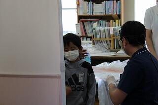 1年生から3年生は、マスクをつけたまま検診を受けました。