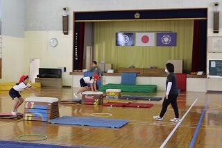 今日は、オリエンテーションと低い跳び箱をとぶ学習でした。