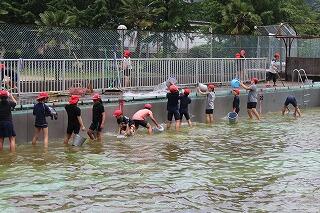 「冷たい。」との声もあがりましたが、楽しそうに水慣れをしていました。