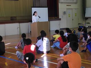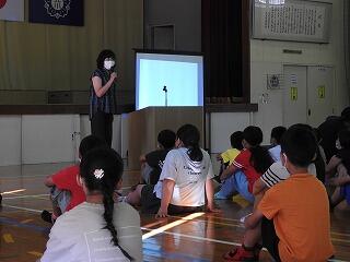 7月の生活目標である「廊下は右側を歩こう」について、河野先生がお話をしました。実際にどんな危険があるのかが、動画でわかりやすくまとめられていました。みんなが安全に過ごせるようきまりを守って生活していくことが大切です。
