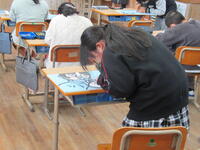 北川小学校では、子どもたちが学校の様子を葉書に書いて、地域の方々に送っています。時期的に、年賀状です。